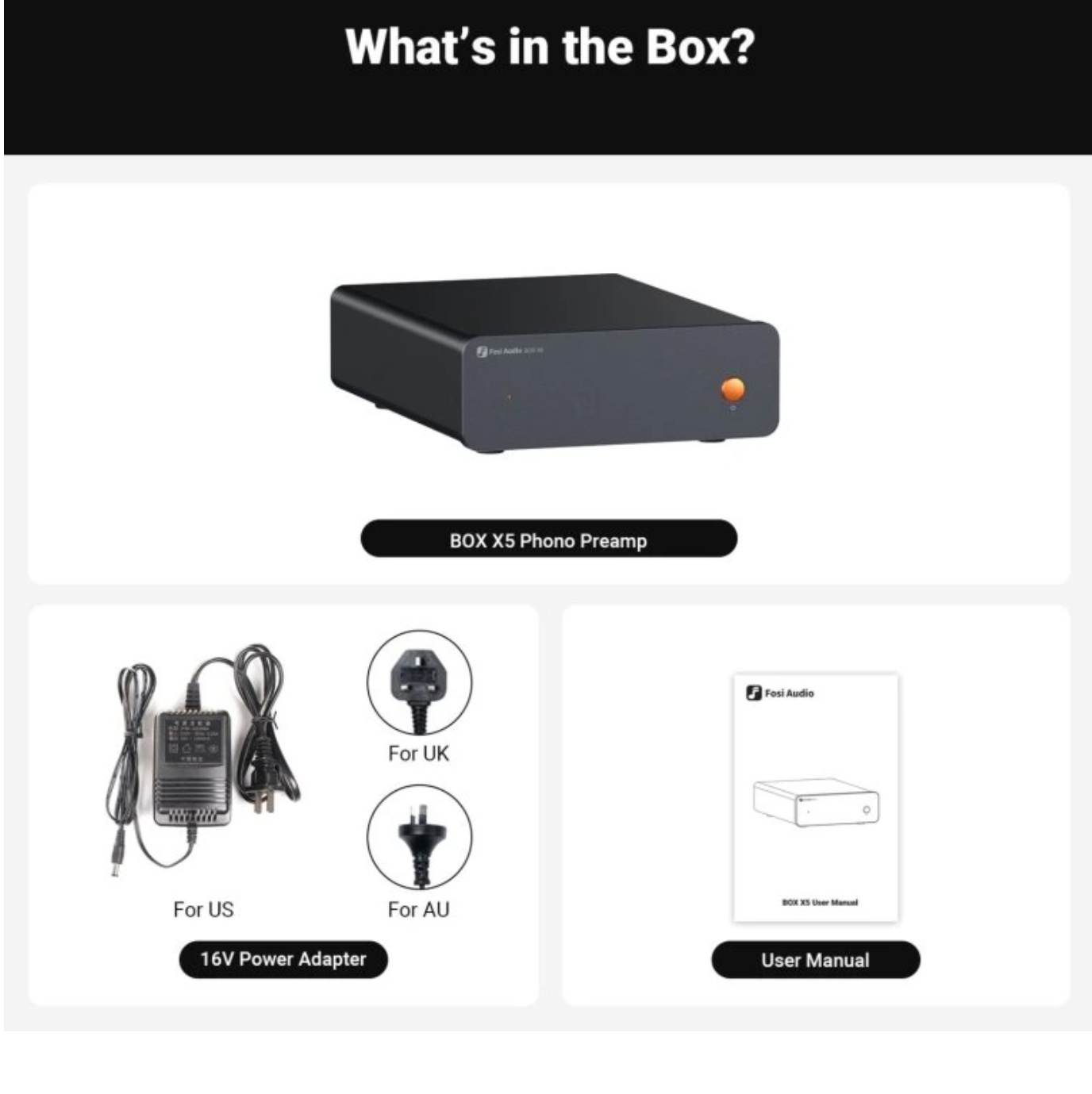 Fosi Audio BOX X5 je phono předzesilovač navržený pro gramofony s přenoskami typu MM i MC. Dokáže převést slabý signál z gramofonu na úroveň použitelné linkové úrovně, čímž umožní připojení k běžným zesilovačům, aktivním reproduktorům nebo HiFi systémům bez vestavěného phono vstupu. Díky precizní RIAA korekci přináší vinylovým deskám bohatý, čistý a dynamický zvuk.