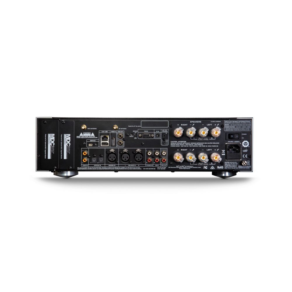Ve své standardní podobě je NAD M33 již velmi komplexní s celou řadou vstupů / výstupů vč. XLR vstupů, BluOS streamerem, korekcí zvuku Dirac, HDMI eARC vstupem a dalšími již plně integrovanými funkcemi a vlastnostmi. Splní tak požadavky i těch nejnáročnějších uživatelů. Aby se minimalizovalo riziko budoucího zastarávání, přichází NAD M33 se dvěma sloty MDC, které umožňují další expanzi. Společnost NAD představila platformu MDC před deseti lety a umožnila aktualizaci produktů novými technologiemi, které v době uvedení produktů vůbec neexistovaly.