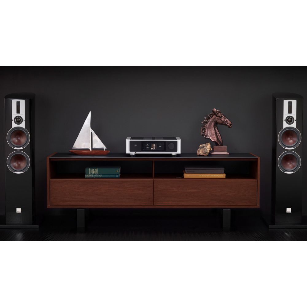 Vstupy 1 x stereo XLR symetrický, 1 x AES/EBU XLR, 1 x stereo linkový RCA, 2 x digitální koaxiální, 1 x stereo vstup pro gramofon, 2 x digitální optický TOSLINK, 1 x HDMI eARC, 1 x RS232, 1 x USB-A, 1 x Gigabit Ethernet RJ45, 1 x WiFi anténa, 1 x Bluetooth anténa, 1 x IR 3.5mm jack, 1 x 12V trigger 3.5mm jack