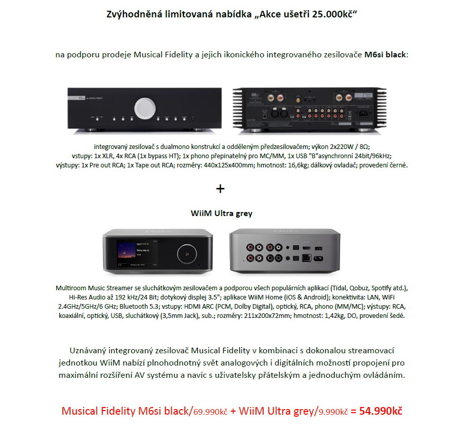 Musical Fidelity M6si black / 69.990kč + WiiM Ultra silver / 9.990kč = 54.990kč