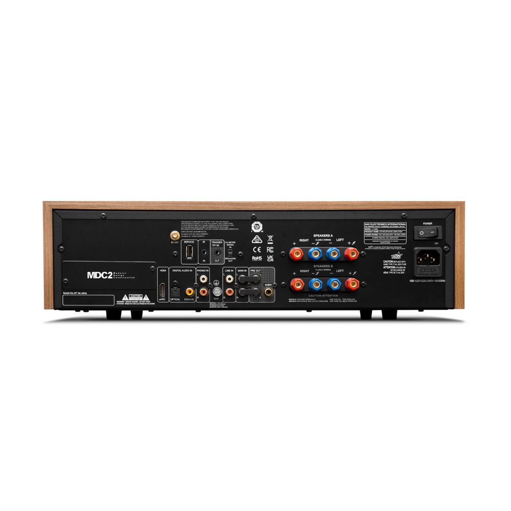 Vstupy 1 x stereo linkový RCA, 1 x Phono MM stereo vstup pro gramofon, 1 x stereo RCA vstup pro předzesilovač, 1 x digitální optický TOSLINK, 1 x digitální koaxiální, 1 x HDMI eARC, 1 x IR 3.5 mm jack, 1 x USB-A (pouze pro servisní účely), 1 x Bluetooth anténa
