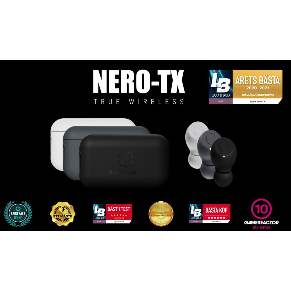 NERO-TX jsou jedny z nejmenších zcela bezdrátových sluchátek na trhu. Navzdory extrémně kompaktnímu formátu má model vynikající zvukovou kvalitu díky pokročilé digitální technologii a vysoce účinným bateriím.