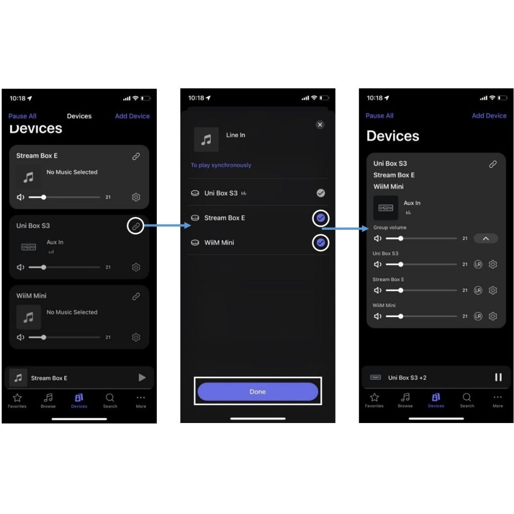 Uni Box S3 dokonce umožňuje streamovat zvuk z libovolného připojeného zařízení – gramofon, CD přehrávač, TV, atd. – na jiné kompatibilní streamery* umístěné v dalších místnostech na stejné síti (* Uni Box S3 je kompatibilní se Stream Box E, Stream Box S3 a Wireless Box E).
